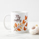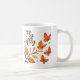 Mit diesem beruhigenden Herbstdesign gönnen Sie sich einen Drink. Diese Tasse mit flatternden orangefarbenen Schmetterlingen und goldenen Blätter bringt einen friedlichen Start in den Tag. Der Satz "Fliegen sanft" erinnert Sie daran, die Schönheit des Lebens zu verlangsamen und zu genießen.