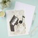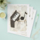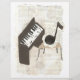 Eine musikalische Note spielt ein Klavierdesign platziert auf einem Set von Flyern.