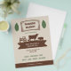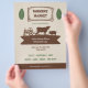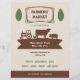 Ein Vintager und rustikaler Flyer für den Markt der Bauer, alles in Beige, Braun und Grün. Es ist mit Blätter und einer Silhouette-Abbildung inklusive Traktor, Kuh, Schwein und Huhn.