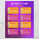 Abstrakter lila, orangefarbener und rosafarbener Veranstaltungskalender mit Flyer. Passen Sie auf Ihre Wünsche ein.