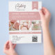 Probieren Sie Ihre Bäckerei mit Stil und Süße! Dieser individuell anpassbare Flyer eignet sich hervorragend, um Ihre Kuchen, Makaronen, Kuchen und vieles mehr zu präsentieren. Fügen Sie Ihre eigenen drei Fotos hinzu, um Bestseller oder Signaturdateien zu markieren, und personalisieren Sie den Text mit Ihren Initialen, Namen, Kontaktinformationen und Tagline. Ein eigener Abschnitt für einen QR-Code macht es für Kunden einfach, Sie online zu scannen und zu bestellen oder zu verfolgen. Ideal für Bäckereien, Konditorei-Koch, Kuchenkünstler und Dessertgeschäfte, die ihre Marke auf berufliche Weise teilen wollen.