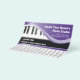 Der lila und weiße Flyer ist mit Tastatur und benutzerdefinierbarem Text ausgestattet. Schneiden Sie die senkrechten Linien im unteren Teil des Flyers aus, damit die Passanten Ihre Informationen ganz einfach mitnehmen können.