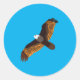 Flying Bald Eagle Bird Classic Round Sticker. Schöner, fliegender Adlervogel in der blauen Himmelsvektorillustrierung für Adlerliebhaber. Der Glatzadler ist einer der größten Vögel Nordamerikas. Der lateinische Name "Haliäetus leucocephalus" bedeutet "Weißkopfseeadler". Der Name des Adlers stammt aus einer älteren Bedeutung des Wortes "weißer Kopf".