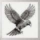 Flying Bald Eagle Black and White Art, Heavy Wings Poster