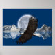 Flying Bald Eagle, Mountain & Moon Art Poster