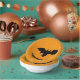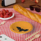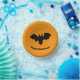 Fledermaus auf orangefarbenen Papierschalen. Frohe Halloween!