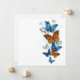 Fliegender, heller, blauer Schmetterlingsmorpho und orangefarbener Monarchschmetterling auf weißem Hintergrund. Morpho. Monarchfalter. Design mit Schmetterlingen.