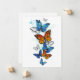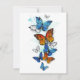 Fliegender, heller, blauer Schmetterlingsmorpho und orangefarbener Monarchschmetterling auf weißem Hintergrund. Morpho. Monarchfalter. Design mit Schmetterlingen.