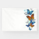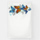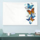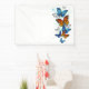Fliegender, heller, blauer Schmetterlingsmorpho und orangefarbener Monarchschmetterling auf weißem Hintergrund. Morpho. Monarchfalter. Design mit Schmetterlingen.