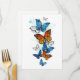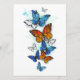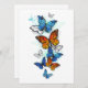 Fliegender, heller, blauer Schmetterlingsmorpho und orangefarbener Monarchschmetterling auf weißem Hintergrund. Morpho. Monarchfalter. Design mit Schmetterlingen.