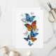 Fliegender, heller, blauer Schmetterlingsmorpho und orangefarbener Monarchschmetterling auf weißem Hintergrund. Morpho. Monarchfalter. Design mit Schmetterlingen.