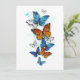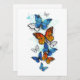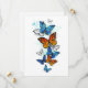 Fliegender, heller, blauer Schmetterlingsmorpho und orangefarbener Monarchschmetterling auf weißem Hintergrund. Morpho. Monarchfalter. Design mit Schmetterlingen.