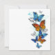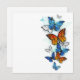 Fliegender, heller, blauer Schmetterlingsmorpho und orangefarbener Monarchschmetterling auf weißem Hintergrund. Morpho. Monarchfalter. Design mit Schmetterlingen.
