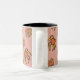 Wer würde nicht an die Wärme des Frühlings und des Sommers denken, wenn er von dieser Tasse-Design voller fliegender orangefarbener und gelber Gängen auf einem gedämpften rosa Hintergrund trinkt?