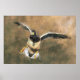 Eine Aussicht auf eine Ente, die sich bereit macht, im Wasser zu landen.