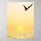 Dieses Bild zeigt einen fliegenden Adler mit Sonnenuntergang über dem Meer