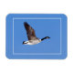 Eine kanadische Gans, die in einem strahlend blauen Himmel fliegt.
