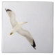 Ein subtiles Bild mit einem Möwe, der über dem Kopf in einem ruhigen Himmel fliegt.