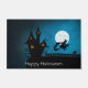 eine Hexe, die auf ihrem Besenstiel vorbei am Vollmond fliegt, mit einem dunklen Haus im Hintergrund und einer Katze auf dem Zaun 100% Anpassung. Klicken Sie auf die Schaltfläche CUSTOMIZE, um einen der Schriftart oder Grafiken hinzuzufügen, zu verschieben, zu löschen, zu verändern oder zu verändern.