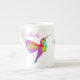 Flying Hummingbird Individuelle Name Knochen China Tasse. Handgemalte Kolibri, farbenfroh, mit gelbem Glitzer und individuelle Name.