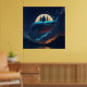 Flying Humpback Whale Moonlight Sea Starry Forests Poster