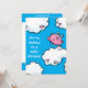 Eine individuelle Baby Dusche Einladung mit einem ansprechenden Cartoon fliegenden Schweinetanz auf niedlichen, flauschigen weißen Wolken. Der gesamte Text ist benutzerfreundlich, also passen Sie sich bitte an den Anzug an, wenn Sie Party benötigen!