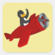 Sticker mit einer Zeichnung mit einer Abbildung eines Pinguins, der ein rotes Flugzeug führt; illustriert von Radka Kavalcova / MaxiHarmony