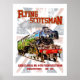 Grunge design of the Flying Scotsman vintage steam train with UK Union Jack flag in background. Classic English LNER Class A1 NO. 4472 Flying Scotsman Locomotive.
