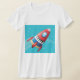 Träumen vom Überfliegen durch den Weltraum in einem Raumschiff. Nun, dieses Design wird diesen Traum erfüllen. Es ist von einem bunten Raumschiff, das durch den Weltraum zieht. Die Rakete ist mehrfarbig und hat einen Dampfweg auf der Rückseite. Es ist Set vor einem blauen Hintergrund. Dieses fliegende Raumschiff sieht auf diesem T - Shirt der Frauen großartig aus. Perfekt für sich selbst oder als Geschenk