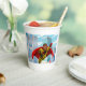 Flying Superhero Comic Style Red and Yellow Held Pappbecher