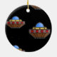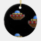 Ein leuchtender, leuchtender Ufos durchquert den Raum, der in Blau, Rot und Braun gehalten ist. Vor der tiefen Weite des schwarzen Hintergrunds.