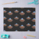 Ein leuchtender, leuchtender Ufos durchquert den Raum, der in Blau, Rot und Braun gehalten ist. Vor der tiefen Weite des schwarzen Hintergrunds.