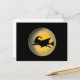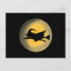 Postcard bedruckt mit Flying Wicked Witch Silhouette By TheFabricSeal ist eine beängstigend aussehende Zauberin mit ihrem fliegenden Hexenbesen und ihrem spitzen konischen Hexenhut, während sie schnell durch die Dunkelheit des Nachthimmels streut und vor dem vollgelben Halloween-Mond vorbeikommt.