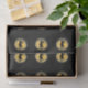 Tissue Paper, gedruckt mit Flying Wicked Witch Silhouette By The FabricSeal, ist eine beängstigend aussehende Zauberin mit ihrem fliegenden Hexenbesen und ihrem spitzen, konischen Hexenhut, der schnell durch den Nachthimmel wandert und vor dem vollgelben Halloween-Mond vorbeikommt.