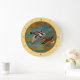 Flying Wild Ducks Yellow Große Wanduhr