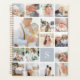 Passen Sie diesen eleganten Planer mit 16 quadratischen Fotos in einem Rasterkollage-Layout an, wobei Ihr Single zunächst ein Monogramm auf einem nebelgrauen Quadrat unten rechts ablegt. Die Rückseite hat Ton auf den Ton Streifen in hellgrau.