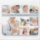 Chic Foto Collage Mousepad zeigt neun beliebte Fotos in einem quadratischen Format, wobei Ihr Familienname, Ihr Firmenname oder Ihre Personalisierungsauswahl auf einem dünnen Band aus Nebel grau angezeigt werden.