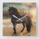 Foggy Friesian Morning - Horse Quadratische Wanduhr
