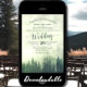 Diese schöne Hochzeitseinladung besticht durch einen rustikalen und dennoch eleganten Stil mit laky Skriptkalligraphie auf einem Aquarell von grünen Pinienbäumen in Nebel. Die Farben sind in verschiedenen Farbtönen aus grün, weiß und blassem Gold gehalten, was diese Einladung perfekt für eine Zeremonie im Freien, in der Wildnis oder im Wald macht. Die Rückseite hat Platz für einen QR Code und eine Web-Adresse, wo Ihre Gäste mehr Informationen und UAWG erhalten können.