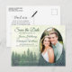 Foggy Green Pine Trees Oval Foto Save the Date Ankündigungspostkarte