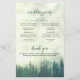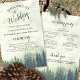 Diese Hochzeitsprogramme sind elegant und geschmackvoll, aber dennoch preisgünstig. Das Design besticht durch eine Bergszene mit grünen Pinienbäumen, die von Nebel oder Nebel umgeben sind. Die Typografie zeigt eine laky Skriptkalligraphie, und es gibt Raum für Details über die Zeremonie, das Brautparty, und ein kurzes Dankeschön.