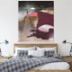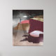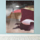 Eine wunderschöne Landschaft mit einzigartigen Texturen, die einen Leuchtturm auf der Klippenseite und einen nebeligen Nachtozean mit aufsteigendem Mond und Sternenhimmel in Rot, Rosa, Gold, Silber und Blau zeigen.