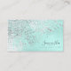 Diese stilvolle Visitenkarte weist einen abstrakten Hintergrund auf, auf dem Glitzern aquamarin in Silberschattierungen glitzern. Fügen Sie Namen, Titel oder Tagline auf der Vorderseite und Kontaktdaten auf der Rückseite ein. Eine elegante und berufliche Wahl für alle Beauty-, Mode- oder stilbezogenen Geschäfte. Hier in Standard-Visitenkartengröße im horizontalen Format dargestellt. Suchen Sie ID775 um andere Größen, Farboptionen und Berufe mit diesem Glam-Hintergrundmuster zu sehen.
