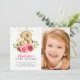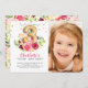 Adorable 3red Birthday Einladung mit einer Zwei-Folien-Ballon, geschmückt mit hübsch rosa Blume mit einem koordinierenden Rücken