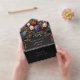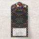 Foil Leaf Frame Quinceanera - Black/Floral Bouquet All-in-One-Einladung