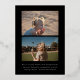 Diese Ankündigung des modernen Abschlusses zeigt ein Single-Quadrat-Foto und eine trendige Typografie in echter Goldfolie mit dem Schulnamen und dem Abschluss Jahr, das den Eindruck einer Briefmarke vermittelt und den Namen der Absolventen auf sehr moderne und trendige Art und Weise hervorgehoben, die von den anderen Informationen des Abschlusses abweicht. Der schwarze Hintergrund verleiht dieser modernen Ankündigung von Abschlüssen Raffinesse. Auf der Rückseite der Ankündigung des Abschlusses befinden sich zwei Fotografien, die perfekt geeignet sind, um ein Foto für die Kindheit einzubinden, und ein Platz für eine längere Botschaft, ideal, um die Leistungen des Absolventen oder zukünftige Pläne hervorzuheben.