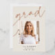 Passen Sie diese schicke Abschluss-Ankündigung mit einem quadratischen Foto überlagert auf dem Wort "GRAD" in Rose Gold-Folie Skript, zusammen mit Ihrem Namen, Schule und Abschluss Jahr. Fügen Sie dem Hintergrund ein zusätzliches Foto und eine persönliche Nachricht hinzu.