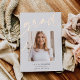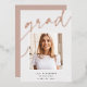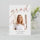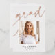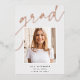 Passen Sie diese schicke Abschluss-Ankündigung mit einem quadratischen Foto überlagert auf dem Wort "GRAD" in Rose Gold-Folie Skript, zusammen mit Ihrem Namen, Schule und Abschluss Jahr. Fügen Sie dem Hintergrund ein zusätzliches Foto und eine persönliche Nachricht hinzu.