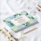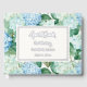 Dieses Gästebuch wird in einem Layout für eine Hochzeit mit einem schönen Hydrangea-Blumendruck und echten Silberfolienakzenten gezeigt. Weiße Seiten Lined Passen Sie dieses Element an und ändern Sie den Beispieltext in Ihren Text. Bild