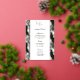 Real Gilded Gold Foil Diese Karte wird in einem eleganten, weißen und goldgelben tropischen Palmprint gezeigt, Drehbuch und Standardtext in einer schwarzen Farbe. Personalisieren Sie dieses Element, und ändern Sie den Text mit dieser Vorlage in Ihren Text. Wählen Sie Ihre Quantität, zuzüglich eines Rabatts.